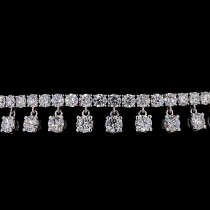 STRAIGHT ROUND DIAMOND TENNIS BRACELET WITH DIAMOND DANGLERS - 7.00CT