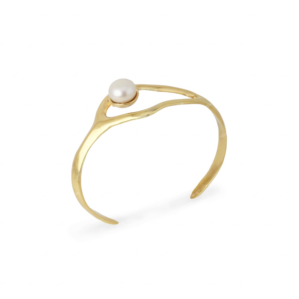 Graphic drop shape silver bangle - Shinny - Gold plated