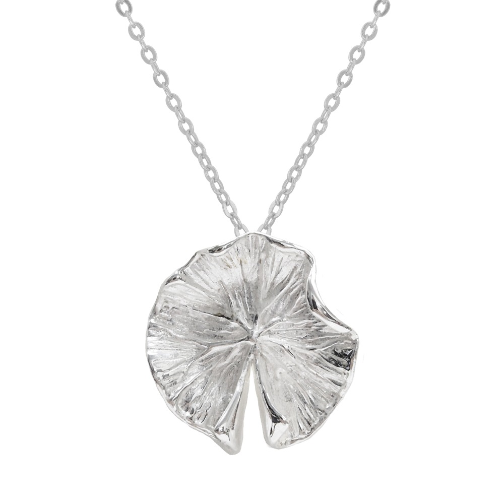Lotus leaf shape silver pendant with silver necklace - Large - Silver & Gold plated
