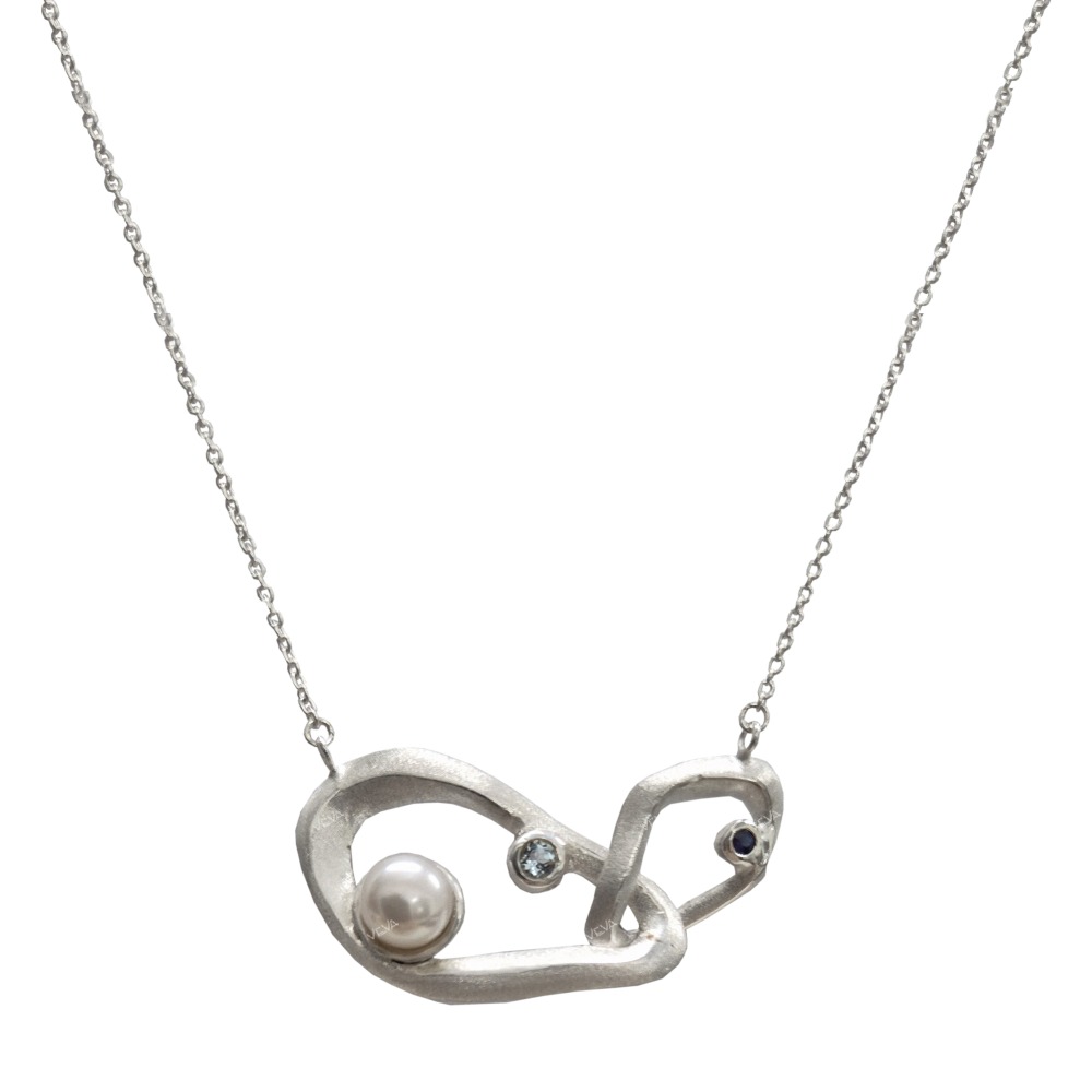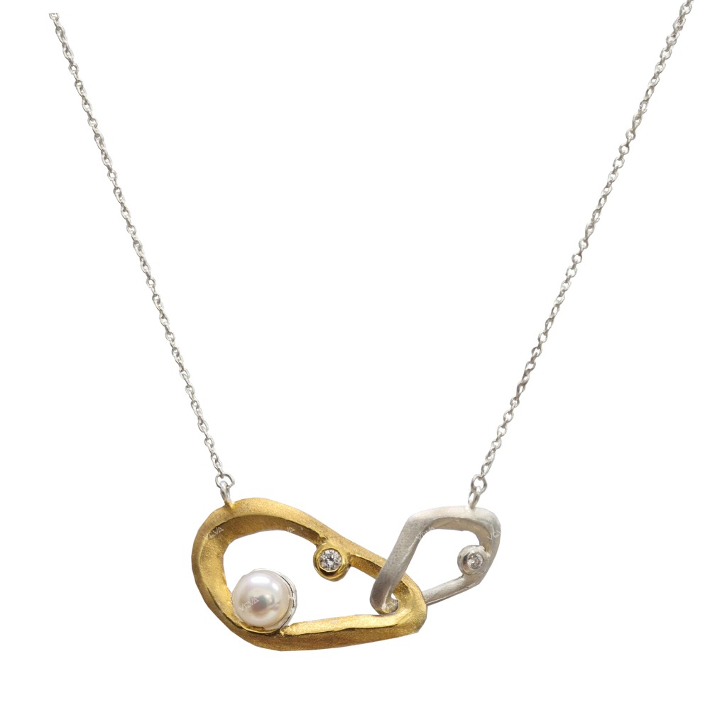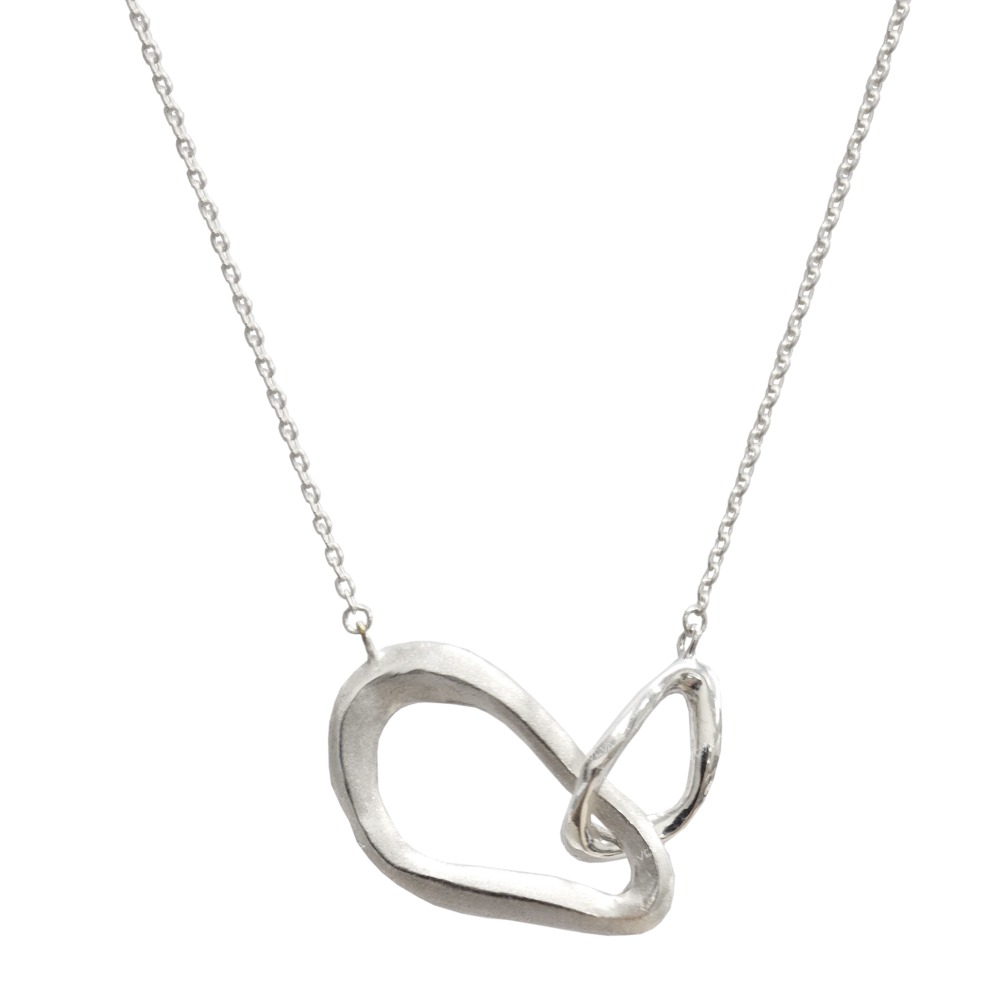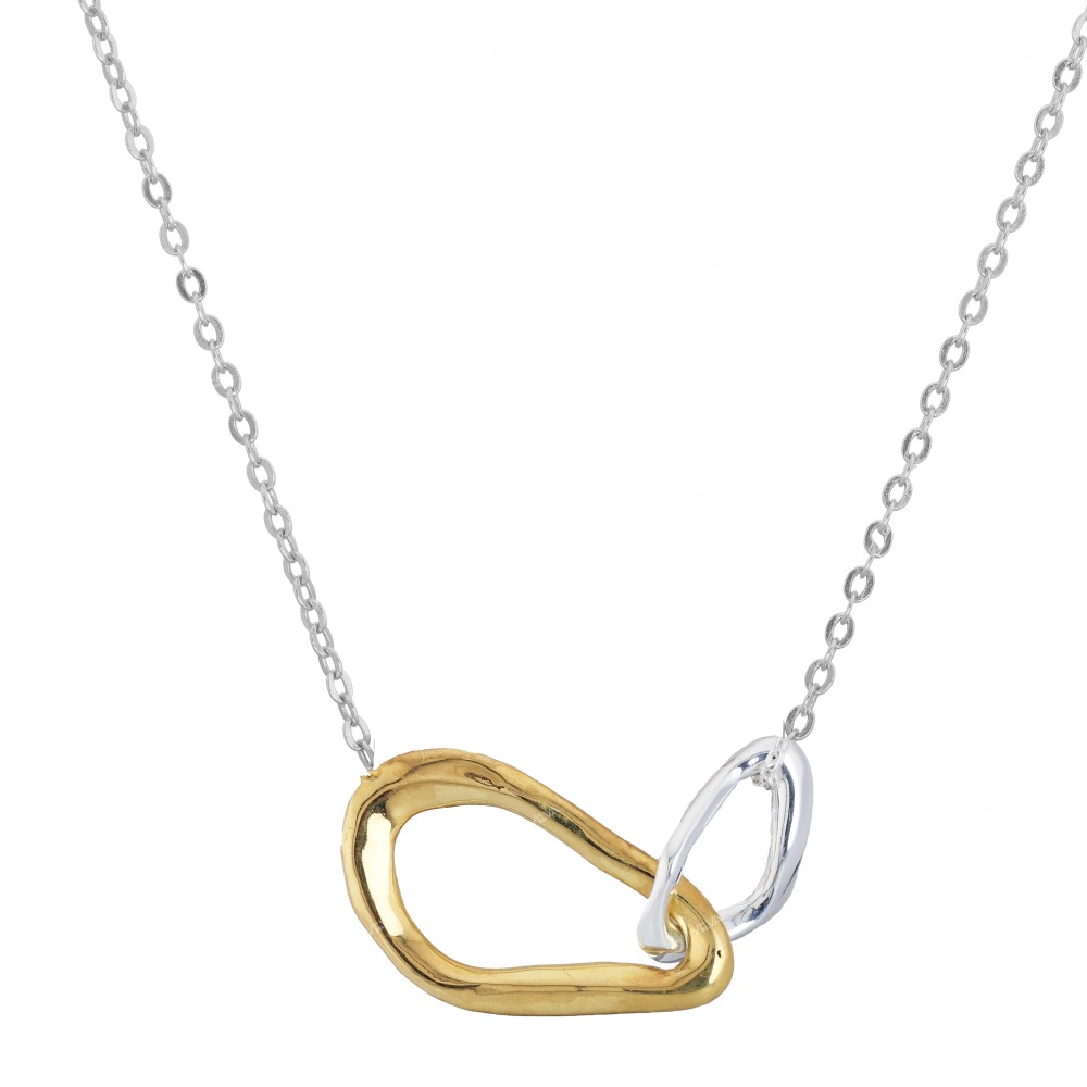 Graphic drop shape silver pendant with silver necklace - Large - Shinny - Gold plated