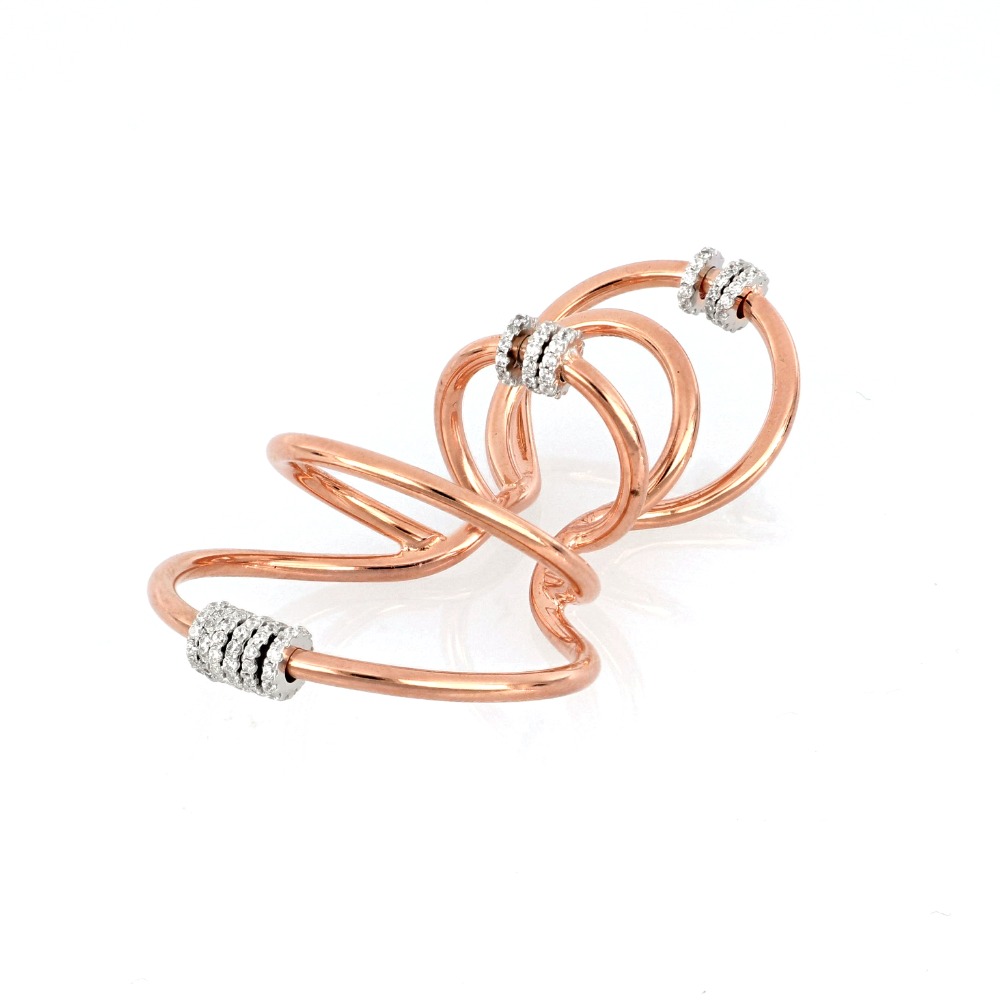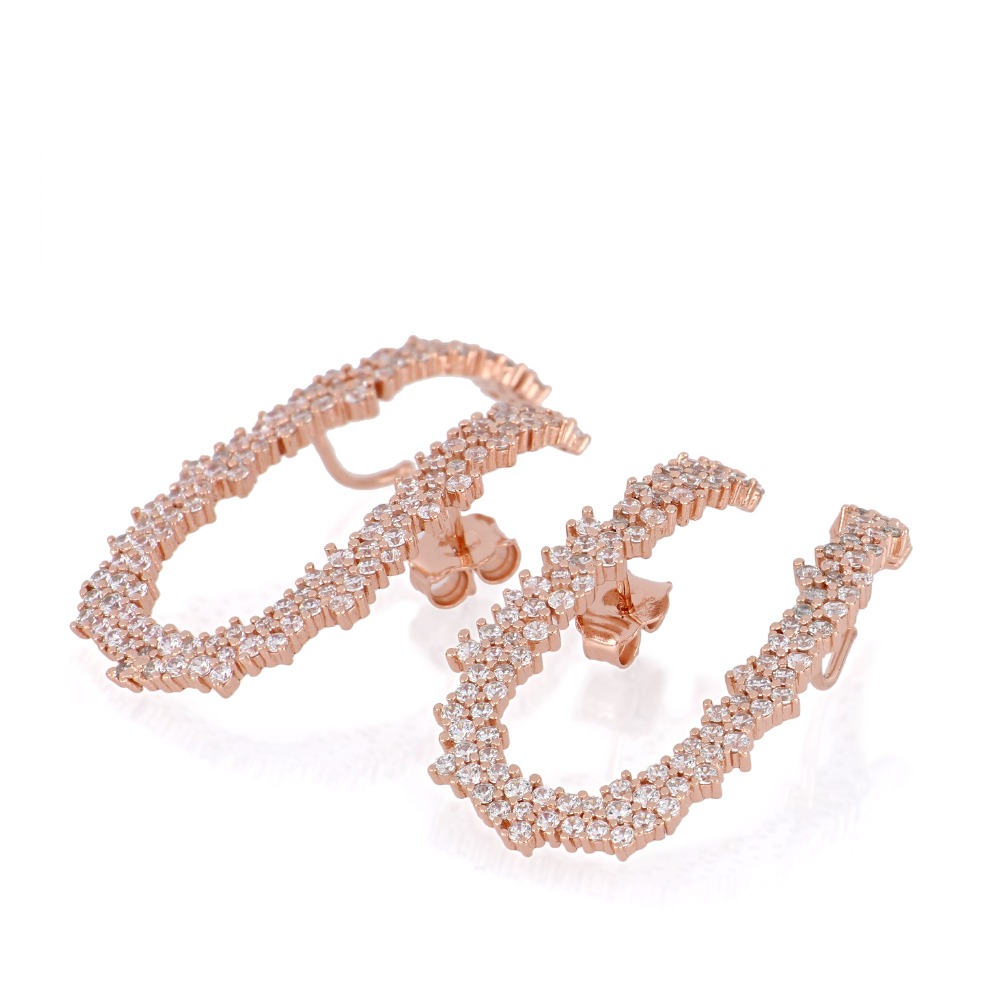 Orecchini in stile moderno in argento rosè su cui sono stati incastonati piccoli zirconi dai toni delicati JVF