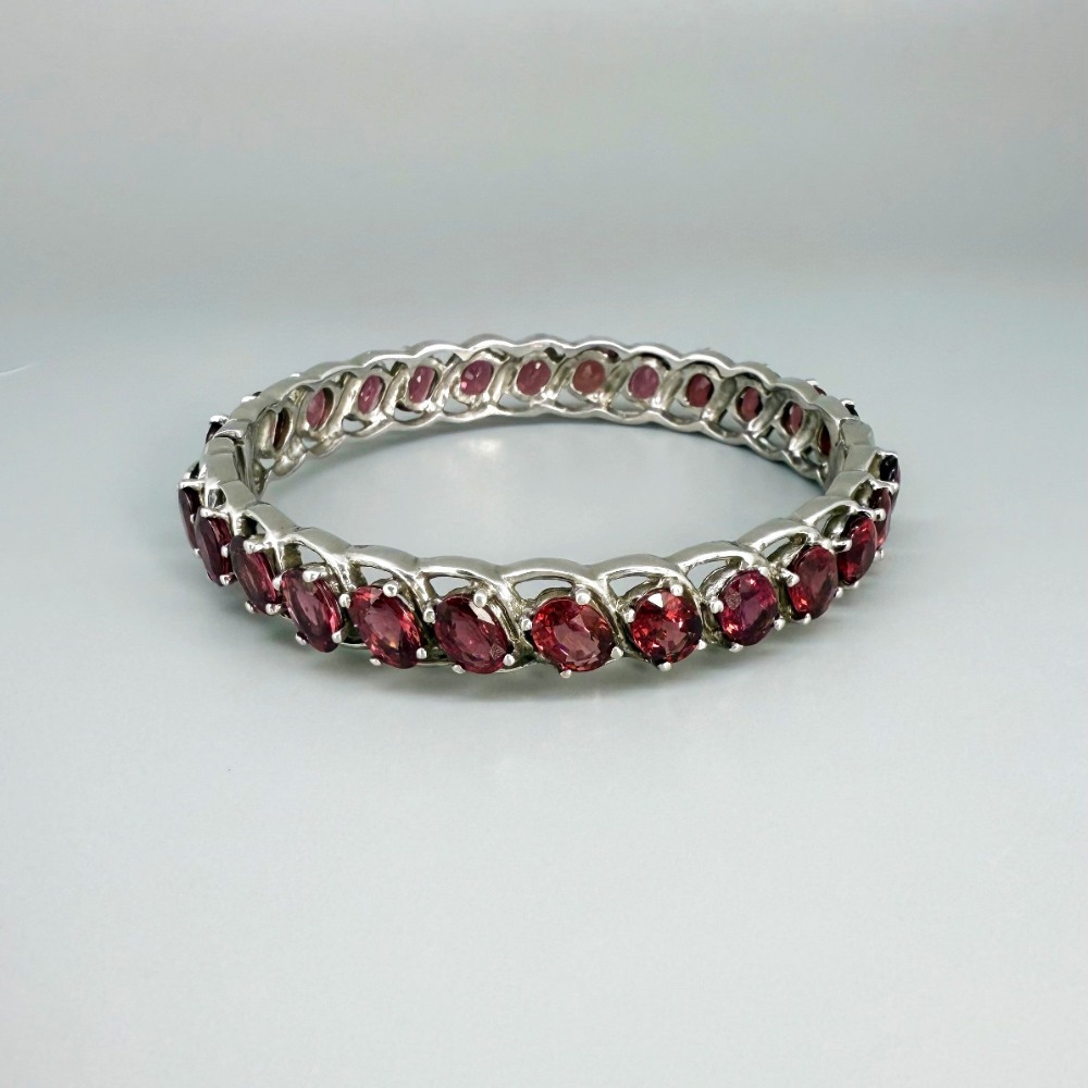 Design: Rigid bangle with faceted Rhodolite Garnets