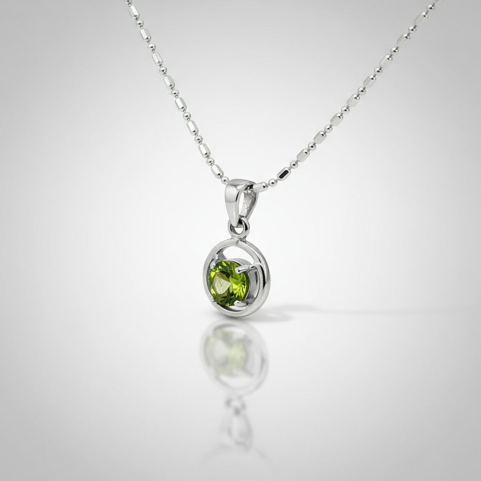 A touch of fresh light and effortless elegance, this pendant features a 1.36 ct natural peridot in a sleek, modern silver setting. The vivid green hue of the gemstone symbolizes renewal and harmony, while the white gold plating adds a refined shine. A minimalist yet radiant design — perfect for daily wear or as a meaningful gift.